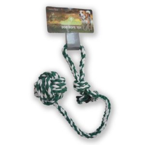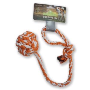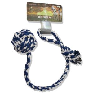 It’s a 10cm diameter ball made of rope, with quite a long rope with a handle. This is our dog’s all time favourite toy, which we have to take on every walk.