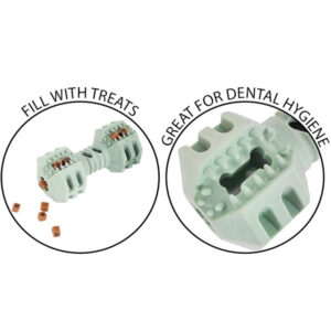 - Treat Dispensing Function: Robust TPR material with a compartment suitable for filling with your dog’s favourite biscuits, treats, or meats, encouraging natural foraging instincts. This also helps to slow down food intake for quick eaters.